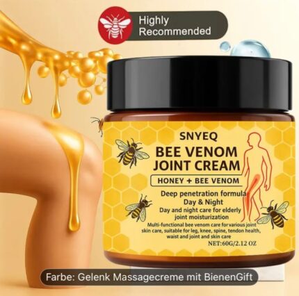 SNYEQ Bee Venom Joint Cream – Honey + Bee Venom — deep-penetrating joint relief cream for day & night use. Naturally soothes stiffness and supports flexibility.